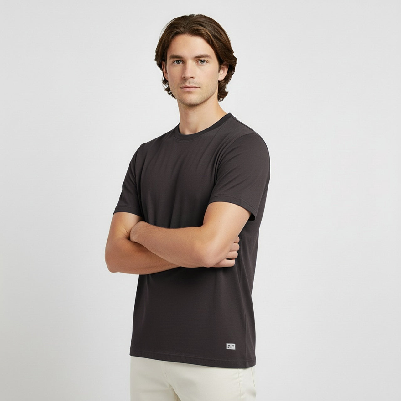 The compact weave allows the tee to retain its shape wash after wash and more resistant to daily wear and tear. Moreover, the extra strong threads provide better stretch and recovery for a clean, contoured fit at all times.